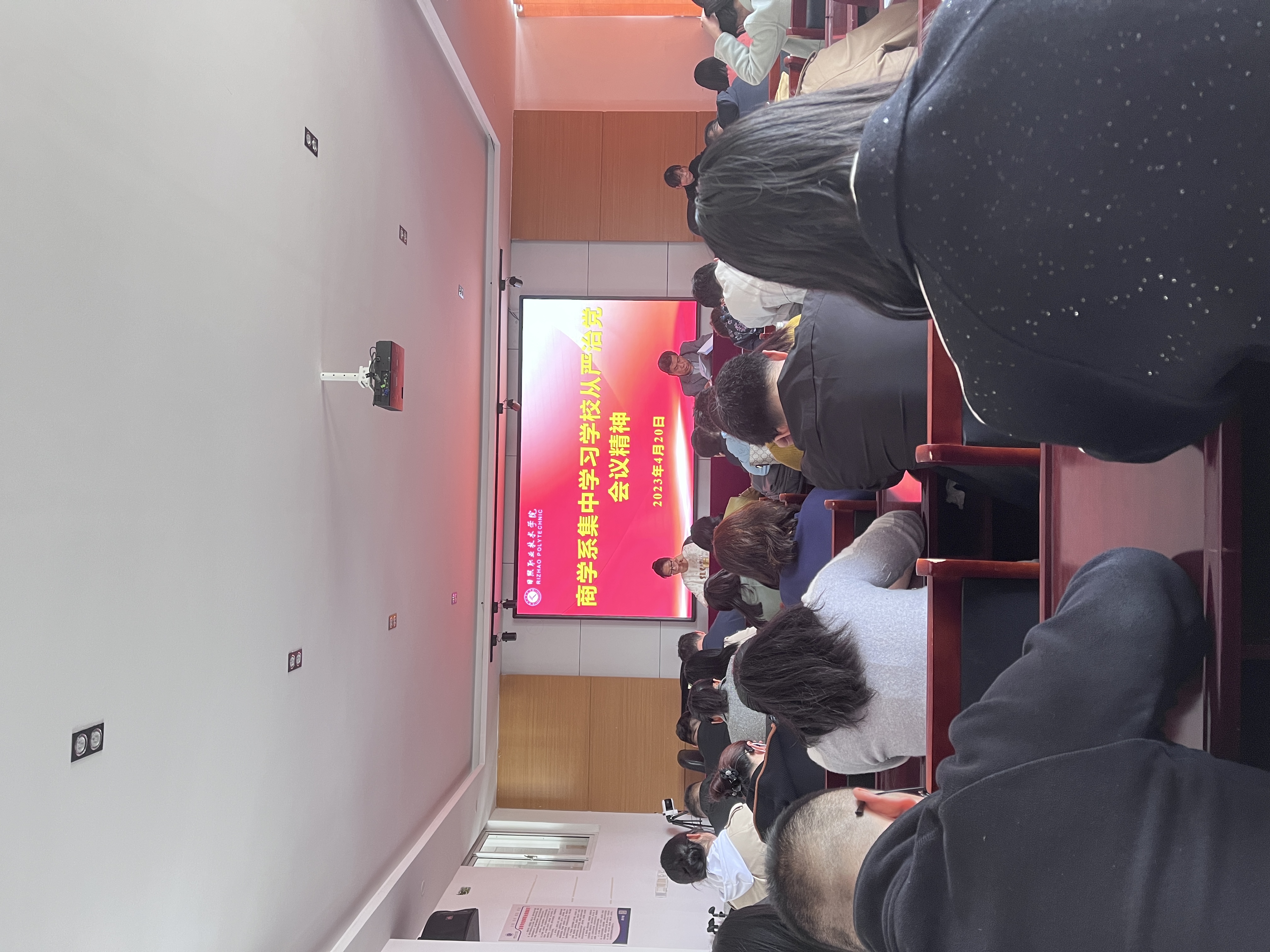 4月20日下午,商学系在海润楼N302召开全体教师会,集中学习学校2023年全面从严治党工作会议精神,并传达学校五届三次教代会会议精神,商学系全体教师参加会议,会议由党总支副书记李运昌主持。