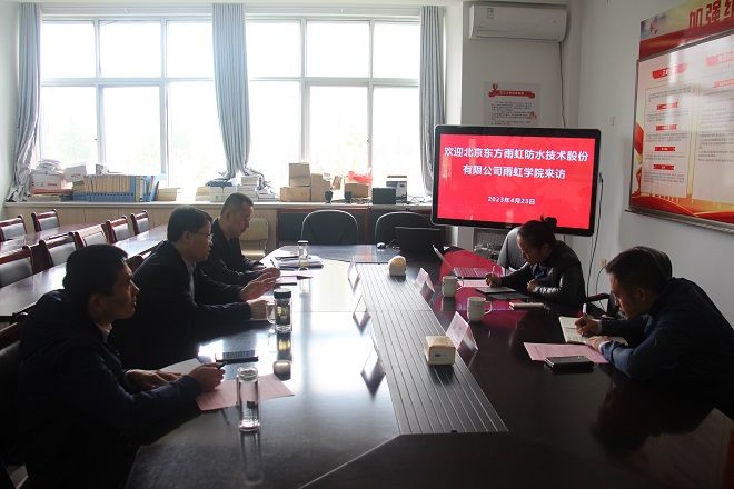 4月23日上午,北京东方雨虹防水技术股份有限公司雨虹学院院长周园、副院长段炼一行来我校调研交流。党委委员、副院长徐锡权接待了来访客人。建筑工程系副主任杨志刚、工程造价教研室主任刘永坤参加座谈交流活动。