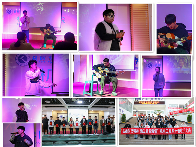 为加强校园精神文明建设,活跃校园文化氛围,创建文明高雅、活泼进取、积极向上的校园文化生活氛围,展现当代大学生的精神风貌,发掘和陶冶热爱音乐的艺术人才,为同学们提供一个展示自我的舞台,4月23日下午,机电工程系在山润楼319举办了以“弘扬时代精神,激发青春激情”为主题的十佳歌手大赛。辅导员教师李敏、杨策策、辛世杰,学生会干部以及各班级学生代表担任评委。