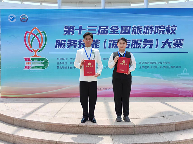 5月11日-14日,第十三届全国旅游院校服务技能(饭店服务)大赛在青岛酒店管理职业技术学院举行。本次大赛由文化和旅游部市场管理司、中国旅游协会指导,中国旅游协会旅游教育分会主办,青岛酒店管理职业技术学院承办。我校酒店管理与数字化运营专业2名专业指导教师和2名参赛学生参加比赛,获大赛银牌一项,铜牌一项。