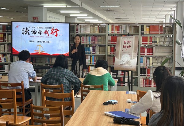 为培养学生树立法治观念,培植法律意识,学习法律知识,开阔学生法治思维和语言表达能力,5月16日下午,图书馆以“法治伴我行”为主题,在二楼人文素养共享空间思政区开展第20期“日知讲坛”演讲比赛活动,号召广大青年学子知法、守法、学法、用法,做新时代法治社会的建设者和接班人。