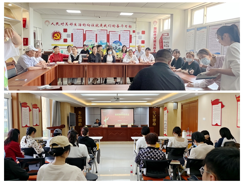 实习学生参加公益性岗位民主测评大会、社区家庭教育促进法学习