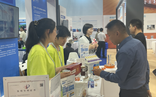 展览布局制造强国、绿色低碳、乡村振兴、“一带一路”、经略海洋、黄河战略、数字经济、人人出彩8个版块。海洋技术系契合“经略海洋”版块主题要求,设置“海洋+水产饲料”“海洋+营养健康”“海洋+生物智造”“海洋+高端动物营养”“海洋+装置设施”等主题展位,结合教师团队研发的专利技术,展示了微藻提取物、微藻培养设备以及虾青素制剂、南极磷虾油、功能红曲、动物营养膏等系列产品,推介了学校对接行业企业需求,在深化科教融汇中破“卡脖子”难题,育科技精英人才,助推企业转型和产业升级的主要做法。成果转移转化带动教师、学生与技术、产品“打包”入企业进车间,教学科研有效衔接,促进教育链、人才链与产业链、创新链有机衔接。