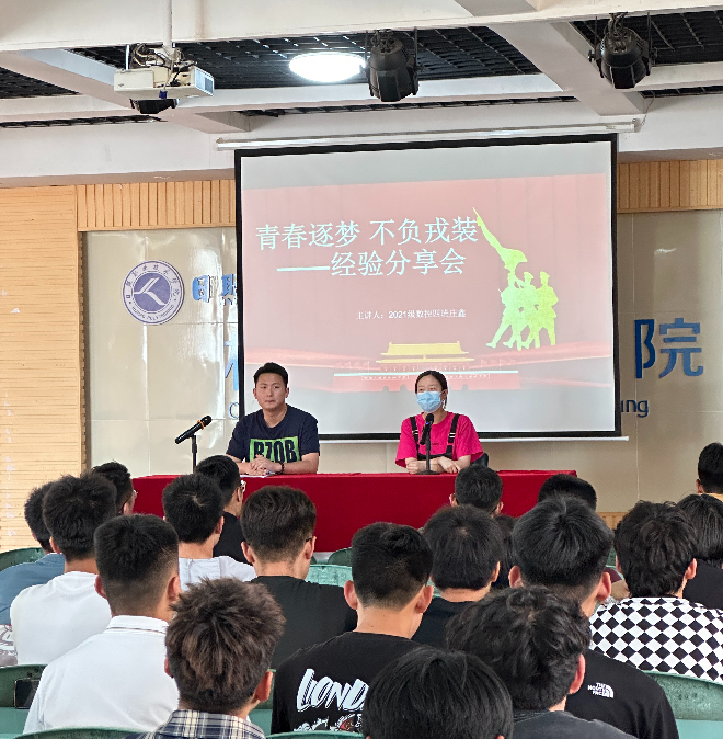 青春无悔,强军有我。参军入伍是学生成长成才、锻炼意志品质的重要途径。此次宣讲会的召开,加深了同学们对参军入伍政策的了解,激发了同学们参军入伍的热情,弘扬了热血青年追逐梦想、积极入伍的家国担当。(机电工程系 杨策策)