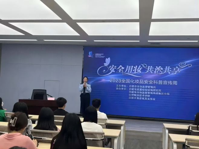 化妆品安全科普宣传周进校园活动为学生选购及使用化妆品提供科学指导,提升大学生对化妆品安全和合理使用的认知水平,推动化妆品安全社会共治。