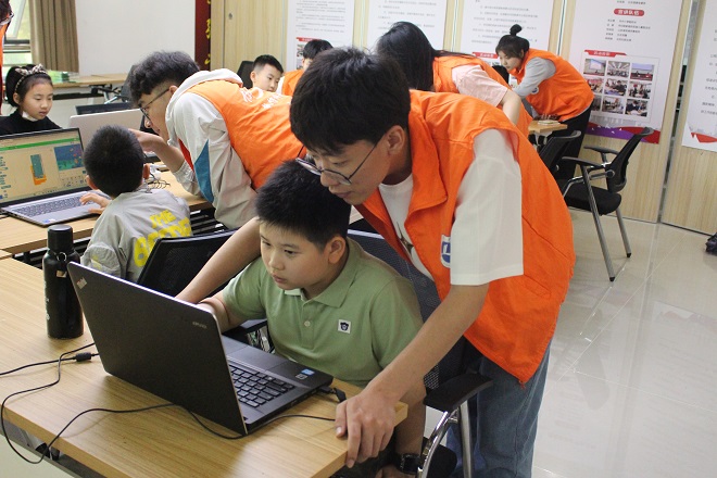 5月27日,电子信息工程系“信之翼·梦荧”公益少儿志愿者服务队与东港区尚德社区开展少儿编程志愿服务活动。目前,尚文和尚德两个社区服务点正在同步开展活动,带领小朋友们学习少儿编程,了解编程的魅力。