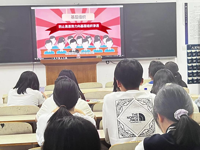 此次活动以班级为单位开展。各班学生集体观看了《反有组织犯罪法》普法小剧。小剧解释了《反有组织犯罪法》的立法背景、亮点工作、重要条款和制定反有组织犯罪法的现实意义,并通过实际案例让学生了解了何为有组织犯罪、当事人如何被骗入局以及遇到有组织违法时的处理方式等。
