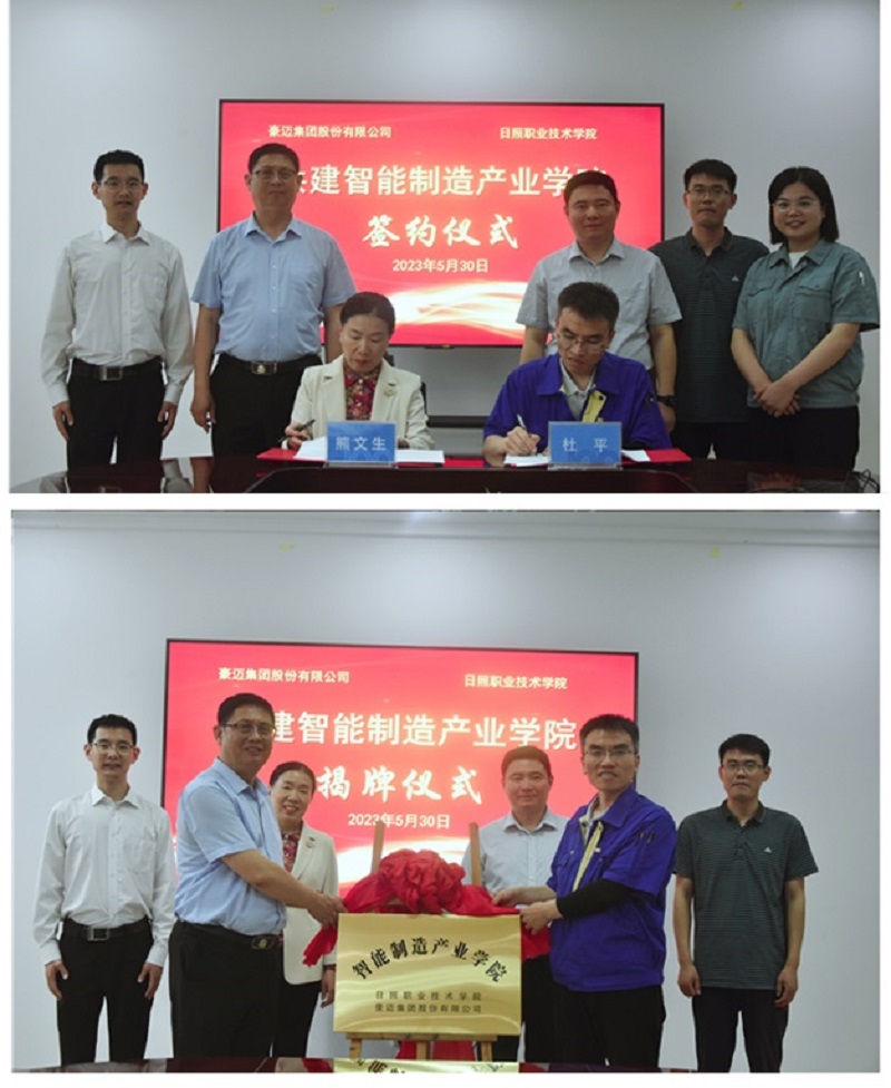 豪迈集团是高端机械装备龙头企业,产品涉及高端机械零部件、工程及装备制造、化工装备、离心式压缩机、气门芯、气门嘴等领域,与我校有着良好的合作关系,机电工程系历届毕业生累计在企工作近四百人。走访期间,集团董事会成员、人力资源部部长杜平向张家瑜一行介绍了企业发展、人才需求、校企合作、产教融合等方面工作,并带领参观了企业展厅、机床事业部车间、校企联合实训基地。双方签署了共建智能制造产业学院框架协议并举行了揭牌仪式,为深化产教融合、培养更多适应产业需求的技术技能人才搭建合作平台。