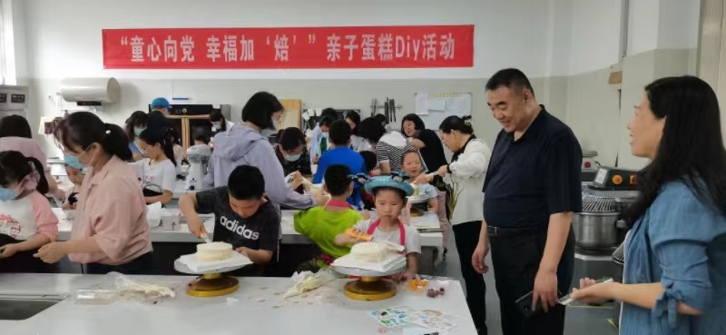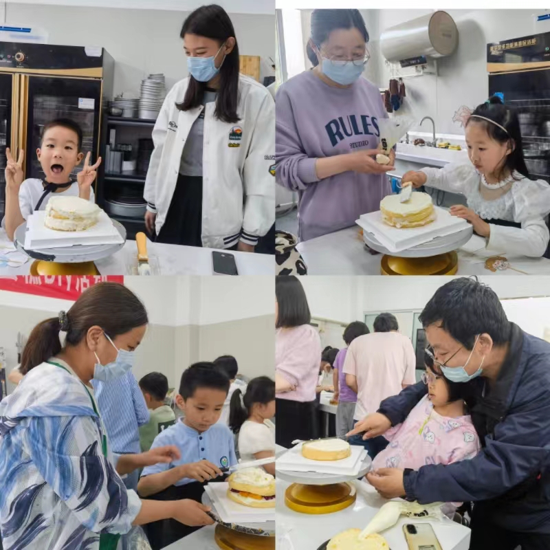 为庆祝六一儿童节的到来,进一步丰富教职工文化生活,6月1日下午,学校工会烘焙协会“童心向党 幸福加焙”教职工亲子蛋糕DIY活动在地滋楼一楼食品创新工坊举办,21组教职工家庭参加。