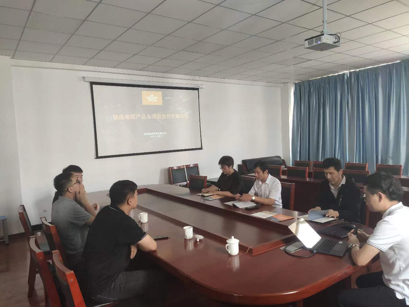 白浦岑介绍了杭州加速科技有限公司的主要业务、取得的成绩,介绍了公司雄厚的技术实力和部分成功校企合作案例。马伟简单介绍了学校和我系的基本情况、专业情况,并称赞加速科技为解决卡脖子问题做的努力。随后,李浩对微电子行业现状和加速科技公司的芯片生产测试流程和设备,以及目前合作的高校项目进行了介绍。校企双方对合作共建的方式进行深入交流,重点在实训室共建、课程开发、师资培训、大赛支持、学生实习就业等方面进行广泛商讨,双方都期待着尽快启动下一步项目合作。