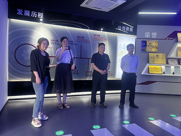 在山东贝宁电子科技开发有限公司,公司副总经理安百芹介绍了企业经营状况、主要产品、人才需求等情况。马伟介绍了学校电子与信息类专业建设、人才培养、校企合作以及学生就业情况,并就现场工程师培养,学生实习就业、教师企业顶岗历练、实训室建设方面与企业团队深入交流。双方就今后校企合作开展物联网,软件运维方向的人才培养、课题研发,共建基于小空间精准灭火系统、智慧斑马线、海洋牧场水下通信等数字化应用场景的校内实训室等方面交换意见。