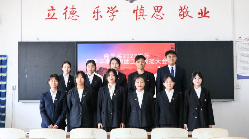 为深入学习贯彻习近平新时代中国特色社会主义思想,表扬先进、树立典型,持续推进我系共青团工作不断改革创新,勇毅前行。6月21日下午,商学系团总支在海润楼S304举办2023年度春季学期共青团工作表扬大会,商学系党总支副书记李运昌、团总支书记范伟军、受表扬的集体和个人、团员代表参会。