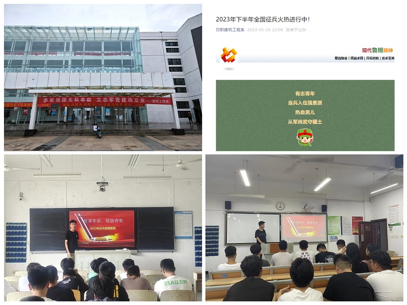 为积极响应党和国家增强国防力量的号召,做好我系学生入伍宣传动员工作,激励广大青年学子报效祖国、为国防事业贡献力量,建筑工程系通过多种渠道积极有序开展2023年征兵宣传。