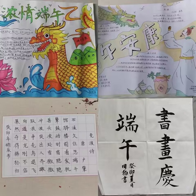 本次大赛以“书画庆端午,墨粽共飘香”为主题进行创作,作品形式分为硬笔、毛笔、绘画三种。同学们积极踊跃的参加本次活动,共收到104余份书画作品。绘画作品色彩丰富,构思精巧,一幅幅精美作品,呈现出了端午节的民俗风情,一笔笔勾勒出的粽叶、被赋予俏皮姿态的粽子、以及活灵活现的龙舟等都透露着同学们对端午的美好期盼和对我国传统文化的热爱。书法作品笔法苍劲,书写了有关传统节日的古诗词,用笔墨丹青展示了中华传统文化的无限魅力,抒发对党、对祖国、对家乡的热爱之情,锻炼了学生的汉字书写能力,也提升了学生对传统文化的兴趣,营造出浓浓的粽香深情。