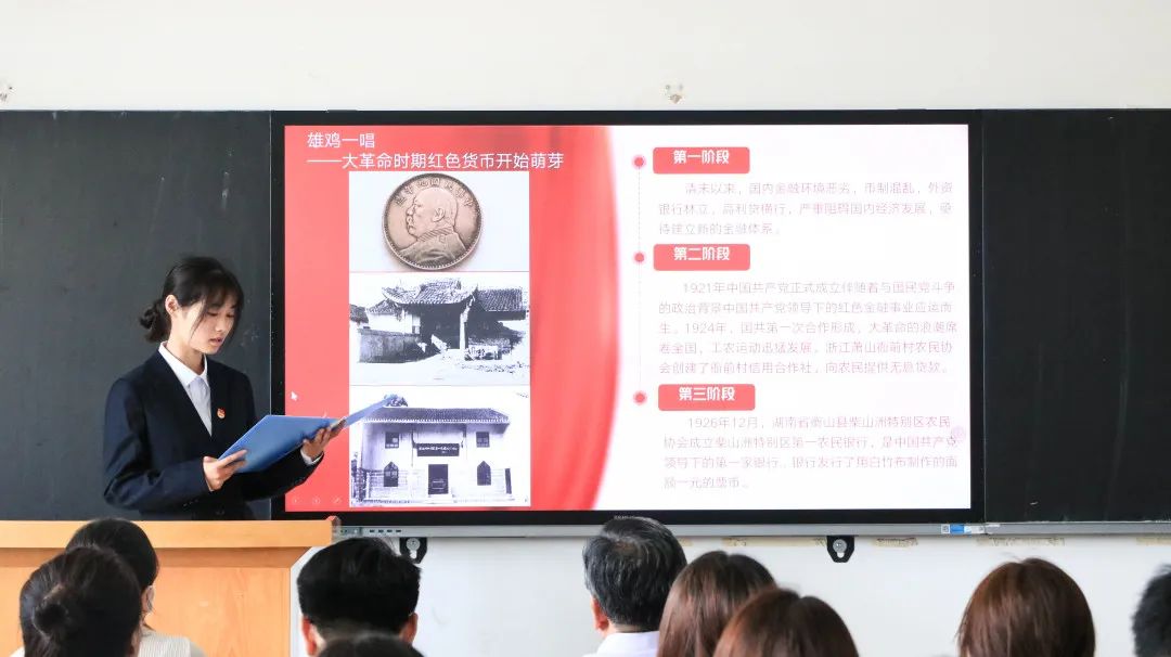 本次团日活动,充分发挥学生自我教育优势,知新宣讲团主动深入各个支部开展红色文化微团课宣讲。学生会干事程晓颖同学以“我心向党,红色金融”为主题,回顾红色货币的起源、发展、精神和启发,引导商科学子,缅怀革命先辈为创建根据地货币金融事业,发扬艰苦卓绝的斗争精神,不忘初心、牢记使命;工商企业管理专业和国际经济与贸易专业的团干部联合宣讲“巾帼英雄刘胡兰”,纪念抗日战争期间为了国家、为了革命建设做出了巨大牺牲的巾帼英雄;市场营销专业“重走长征路,重温长征精神”,以《长征 七律》开篇,重温长征时期我党我军的英勇和智慧,深刻理解长征精神的丰富内涵,教育引导大学生走好新时代长征路,用青春和汗水创造中国奇迹。