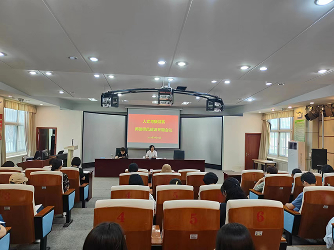 为深入学习贯彻习近平新时代中国特色社会主义思想,贯通学习习近平总书记关于教育的重要论述和指示批示精神,加强新形势下师德师风建设,根据学校《关于在全校开展师德集中学习教育的通知》要求,7月9日上午,人文与旅游系在和润楼一楼会议室召开了师德师风建设专题会议,会议由系副主任李凌主持。