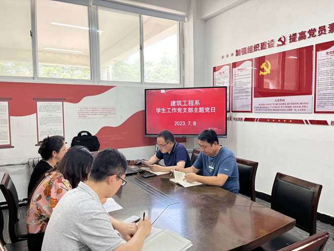 7月8日上午,建筑工程系学生工作党支部在海润楼M101开展“清风育桃李、廉洁润初心”主题党日活动,会议由学生工作党支部书记毛风华主持,全体党员教师参会。