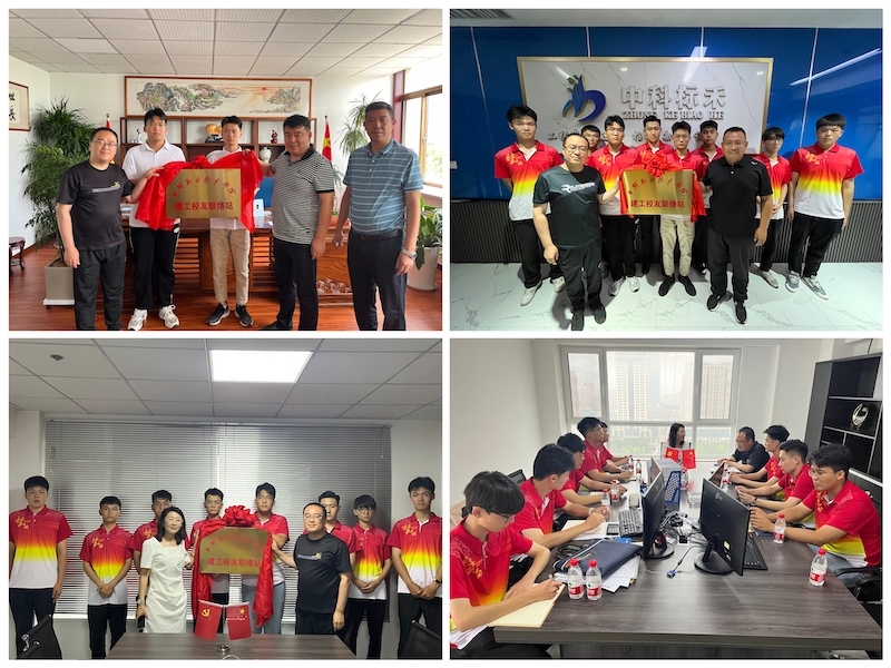 实践团师生一行先后来到科信建设项目管理有限公司威海分公司、潍坊晟德建设项目管理有限公司、中科标禾工程项目管理有限公司、青岛坤和正德建设工程有限公司走访校友和校友企业,并为“建工校友联络站”揭牌。