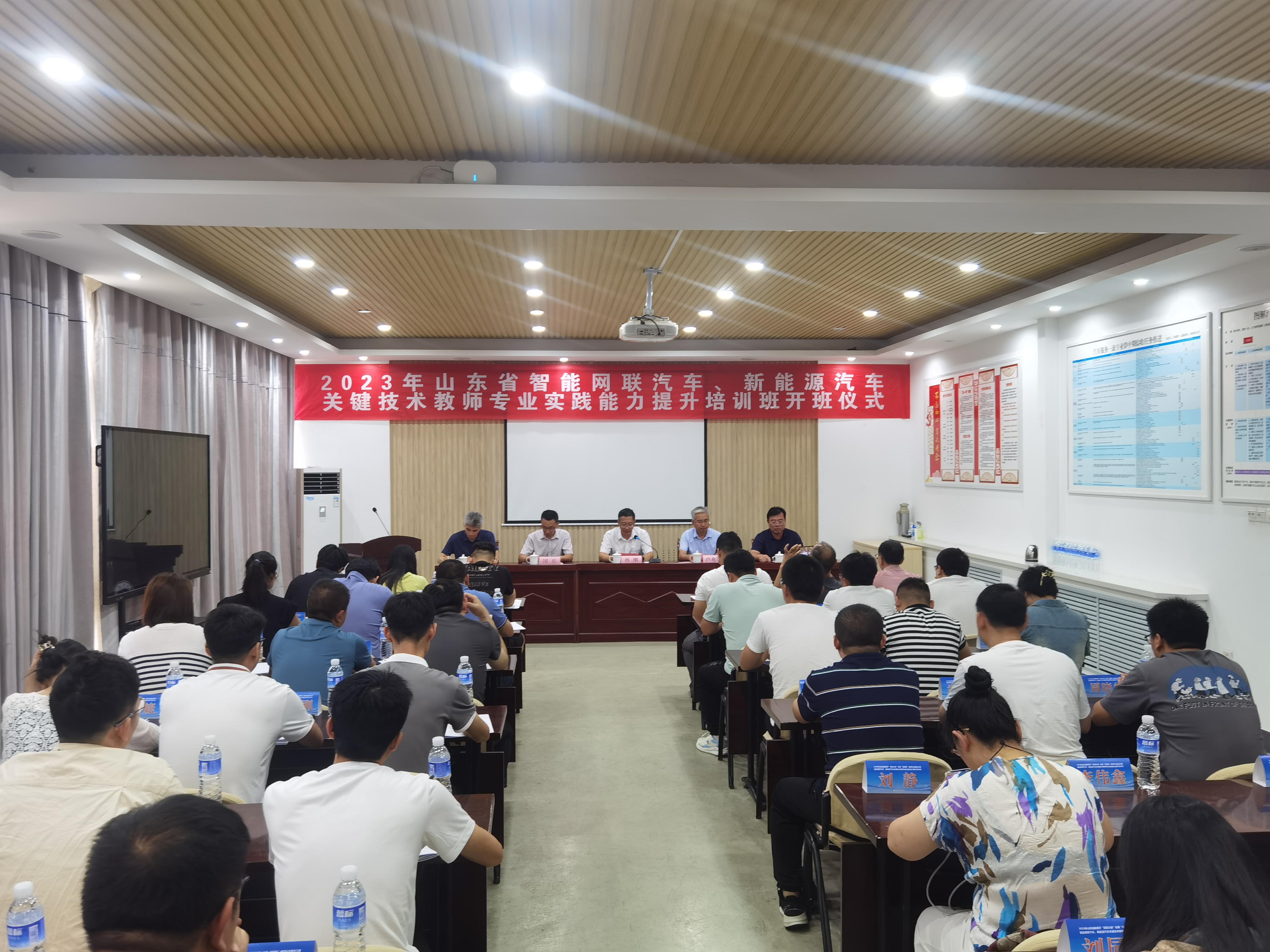 7月25日上午,现代车系在山润楼223会议室隆重举行2023年山东省“双高计划”引领“双师型”教师队伍建设工程——智能网联汽车、新能源汽车关键技术教师专业实践能力提升培训班开班仪式。学校党委委员、副院长孙刚出席开班仪式并致辞,现代汽车系党总支书记国兵、党总支副书记庄岩、系副主任李维营及来自全省中高职兄弟院校的34名参训老师参加仪式,开班仪式由学校教务处处长卢兆丰主持。