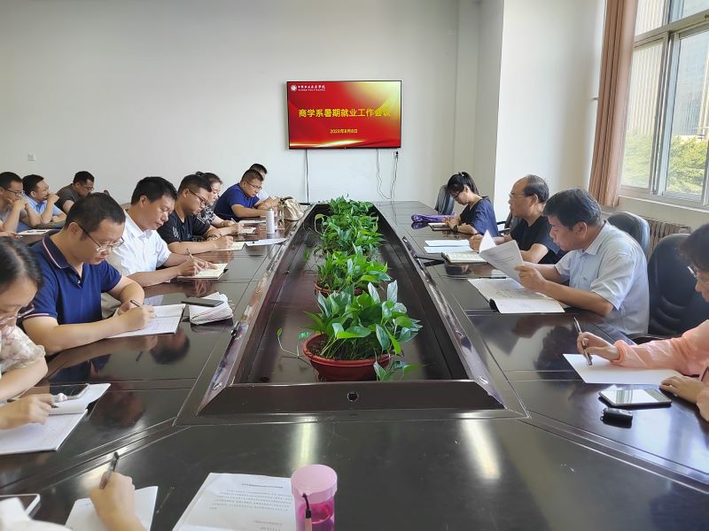 为全面落实国家、省、学校对2023届毕业生就业工作的相关要求,全力做好2023届毕业生就业去向落实工作,8月8日上午,商学系召开暑期就业工作会议,会议由党总支副书记李运昌主持,党总支书记牟宗国、领导班子成员、各教研室主任、毕业班班主任、就业联络员参加会议。