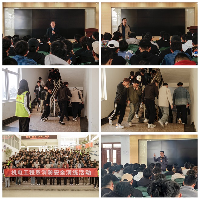 为强化师生消防安全意识,全面提升师生避险、自防自救、逃生能力,坚决防范和遏制火灾事故的发生,4月9日下午,机电工程系联合学校保卫处在山润楼319教室开展消防安全疏散逃生演练。本次活动邀请保卫处处长王传玉、副处长王宏安、辛在省老师指导,系团总支书记张西进、辅导员及2023级学生共计200余人参加演练。