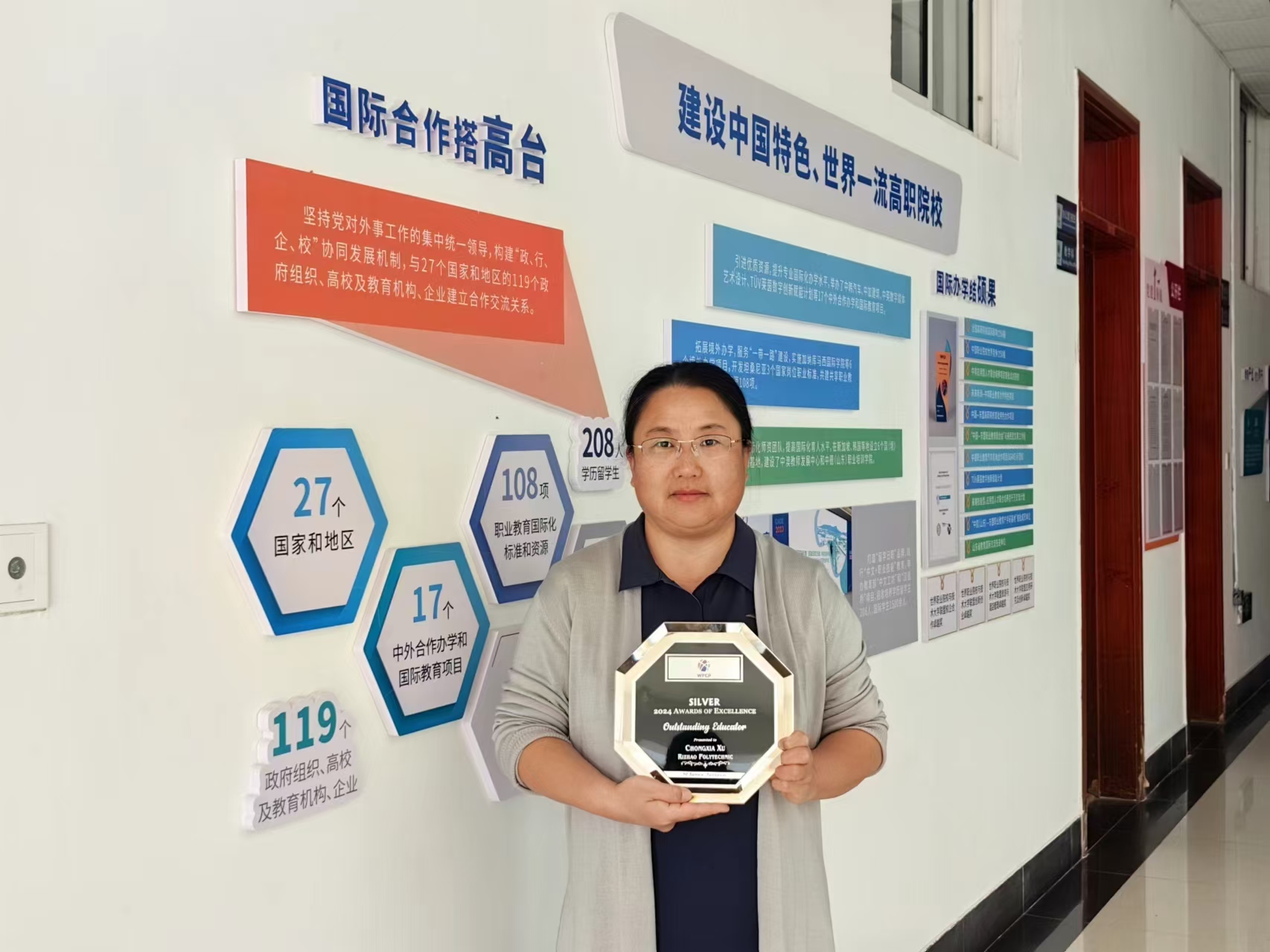 近日,现代汽车系许崇霞老师在世界职业院校与技术大学联盟(WFCP)评选中,荣获“优秀教育工作者”卓越奖银奖。这是现代汽车系首次申请该奖项并成功获此殊荣,为学校赢得荣誉。该奖项旨在表扬那些具备深厚知识功底和卓越教学技能,能够激励学生成长,并为学校教育发展做出突出贡献的杰出人才。