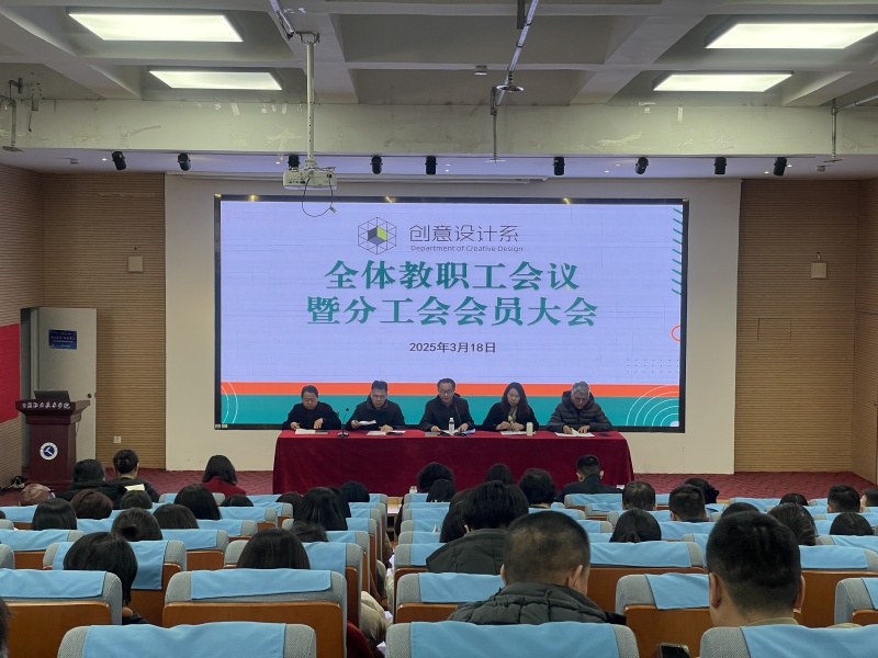 3月18日下午,创意设计系全体教职工会议暨工会会员大会在地滋楼A区二楼报告厅顺利召开,旨在传达学校五届五次教职工代表大会暨五届三次工会会员代表大会会议精神,对2024年各项工作进行总结,对2025年重点工作进行部署。会议由系主任张永宾主持,系党政班子成员和全体教师参加会议。