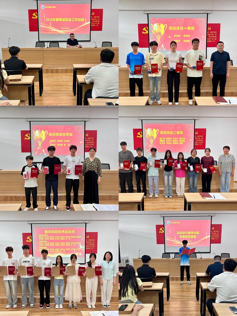 青春跃动展风采,表扬激励启新程。2025年春季运动会已经圆满收官,经过激烈角逐,电子信息工程系获团体总成绩第三名,并荣获精神文明奖。为全面回顾赛事成果、褒奖先进典型、激发运动热情,5月20日下午,电子信息工程系在地滋楼A421召开2025年春季运动会表扬大会,团总支书记马先波、辅导员赵苗苗、李慧杰、王冠华及运动员代表参加会议。