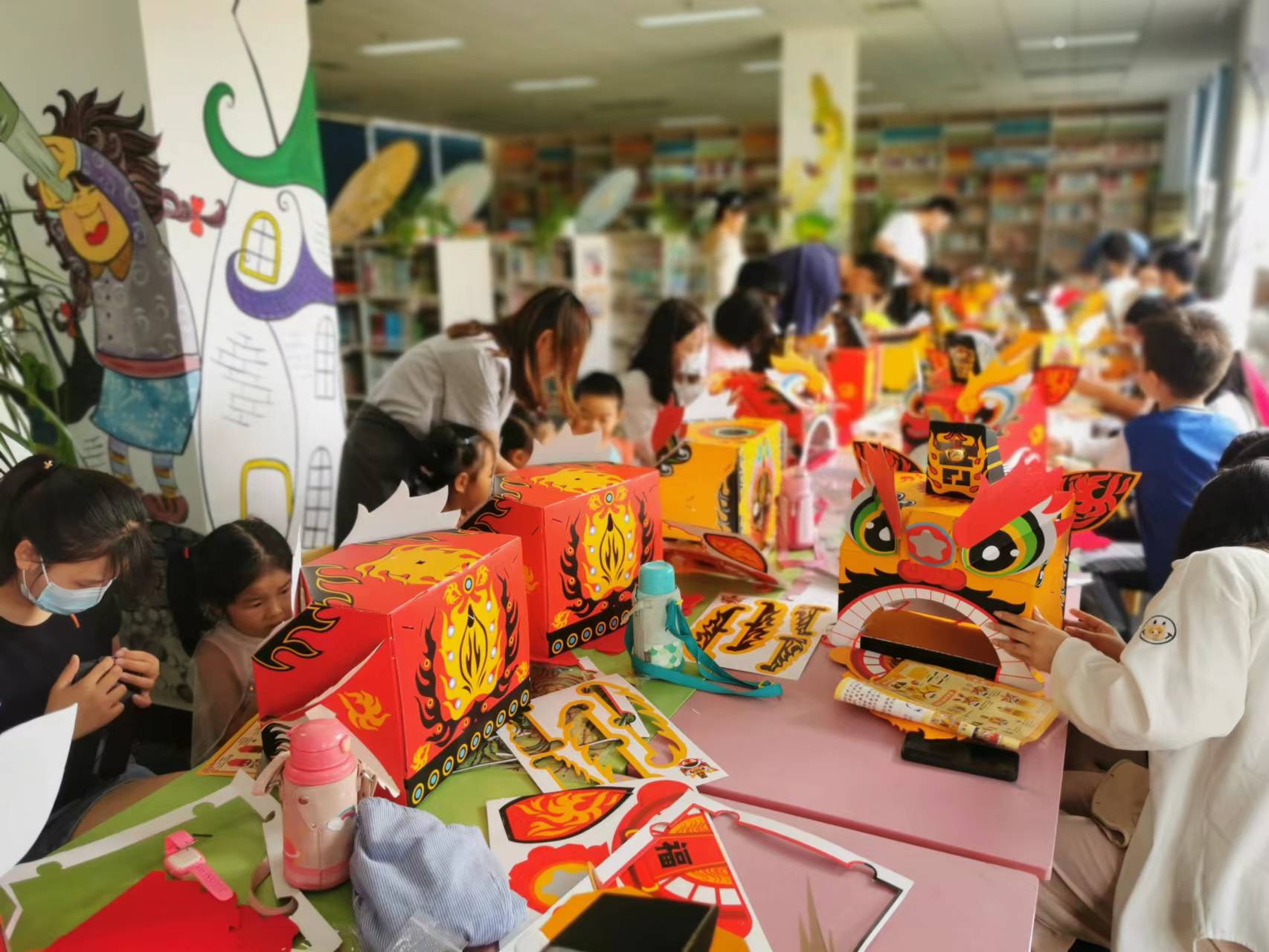 醒狮,属于中国狮舞中的南狮,是中国优秀的民间艺术,古时又称为“太平乐”。狮是由彩色布条制作而成,每头狮一般由2个人合作表演,1人舞头,1人舞尾。表演者在锣鼓音乐下,作出各种形态动作,以图喜庆与吉祥。广东醒狮被认为是驱邪避害的吉祥瑞物,每逢节庆,或有重大活动必有醒狮助兴,长盛不衰,历代相传。在中国传统节日端午节来临之际,图书馆行知书苑特以“醒狮少年”为主题开展社区少儿手工制作醒狮头套活动。活动吸引了20余名小读者和家长参加。