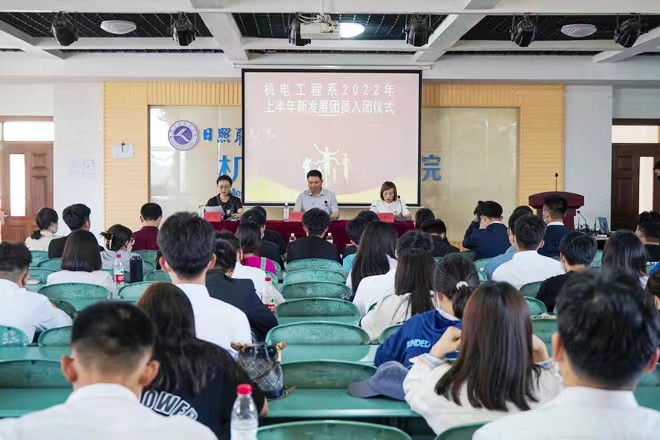 为庆祝建团100周年,加强共青团队伍建设,激励青年坚定理想信念,绽放青春力量,勇担时代责任,5月26日下午,机电工程系在山润楼319举行2022年上半年新发展团员入团仪式。系团总支书记张西进,团总支全体老师以及团员代表参加仪式。