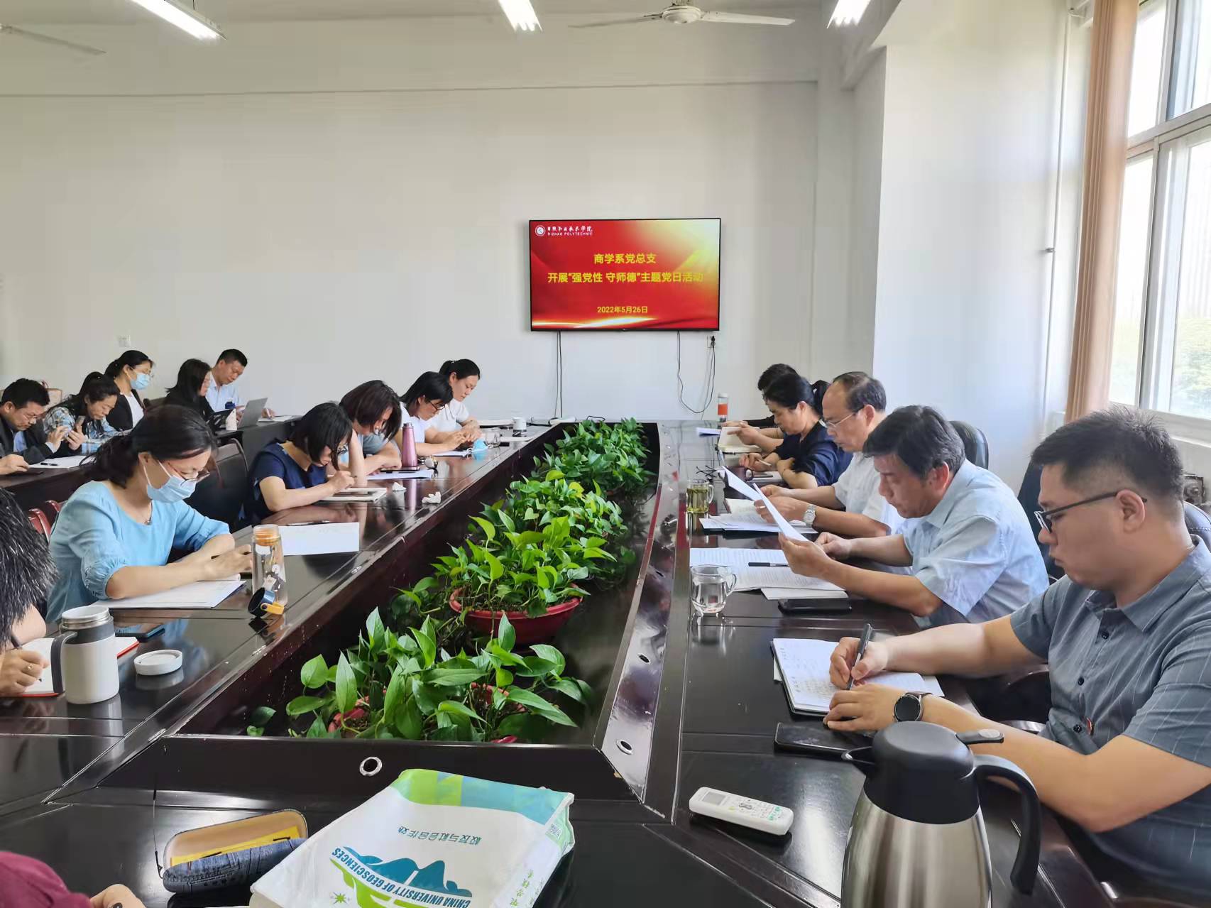 5月26日下午,商学系党总支开展以“强党性 守师德”为主题的党日活动。商学系全体党员参加活动,商学系党总支书记牟宗国主持活动。