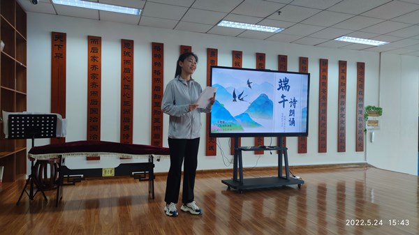 为进一步推动中华优秀传统文化传承发展,发挥传统节日思想熏陶和文化育人功能,5月24日,图书馆在三楼美育+创意共享空间国学区举办了以“诗词里的端午”为主题的传统节日经典诗词诵读比赛活动。