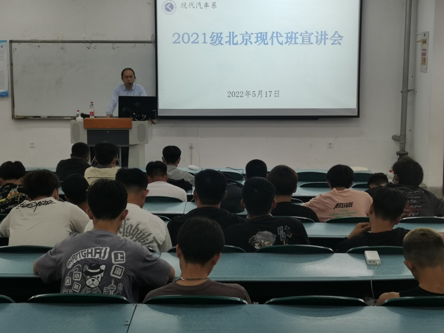 本次组班通过宣讲和考核两个环节高效率完成,5月17日下午,现代汽车系汽车检测与维系技术教研室在地滋楼A127针对2021级学生召开第二届“北京现代班”组班宣讲会。班级负责教师张爽和来自汽车检测与维系技术专业145名学生参加会议。宣讲会从“‘质现代’、‘智未来’的办班理念”、“校企深度融合的班级组建与人才培养”、“班内成员美好的就业前景”三方面对本届现代班进行了详细的介绍,发动广大学生积极报名,5月18日-24日通过专业测试与面试,最终22名学生通过选拔,将进入该班级学习成长。