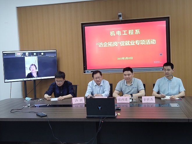 为贯彻落实上级关于“稳就业”“促就业”的决策部署,持续深入的推动2022届毕业生就业工作,5月20日,机电工程系在山润楼423会议室开展线上“访企拓岗”线上交流会。机电工程系党总支副书记成元学、学工科长张西进、电气自动化教研室主任冷波、就业辅导员辛世杰参加本次活动。
