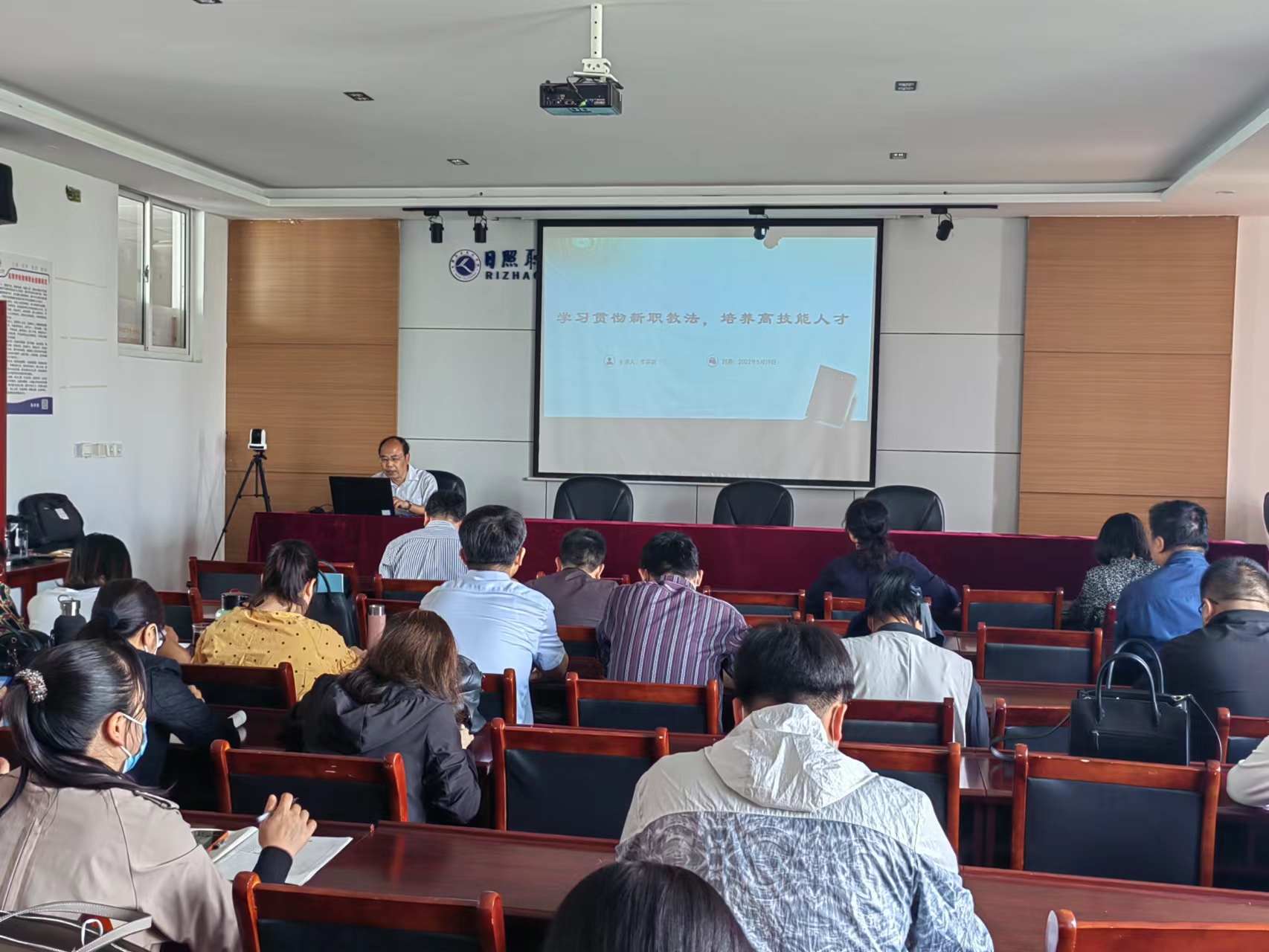 5月19日下午,商学系党总支举行以《学习贯彻新职教法,培养高技能人才》为主题的专题党课,商学系全体党员参加学习,非党员教师列席会议,本次专题党课由商学系党总支书记牟宗国主讲。