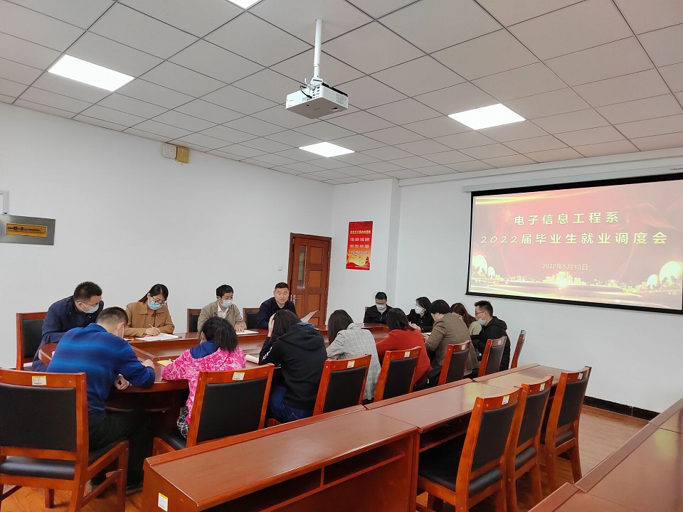 5月10日下午,电子信息工程系在地滋楼A404会议室召开2022届毕业生就业调度会,系党总支书记马伟、党总支副书记田锋、2022届毕业班班主任以及就业联络员参加会议。