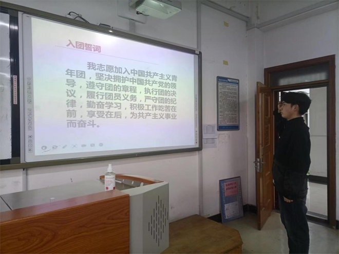 团总支和各团支部利用“红色云展厅”线上平台、班团会学习平台、学生组织平台,组织全体学生进行红色展馆线上参观活动,开展主题团课学习活动,重温入团仪式和誓言,深化社会志愿服务,来警醒青年学生责任,发出新时代青年宣言。红色主题团课搭建给学生了解社会,反思思考,解决问题的平台;“红色云展厅”线上平台展示让同学们重温党、团的百年红色历史和英雄传奇,感受红色精神的洗礼,接受红色文化的熏陶;通过入团仪式的重温,同学们深刻感悟党领导中国青年运动的光辉历程,传承青年的历史精神和优良传统。