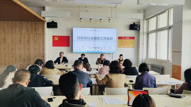 4月26日下午,创意设计系在地滋楼A区219会议室召开科研与社会服务工作会议。会议由系副主任李德华主持,系主任张永宾、文化创意中心主任葛赛、教学科科长杜鹃、各教研室主任、工作室负责人及相关教学管理人员参会。