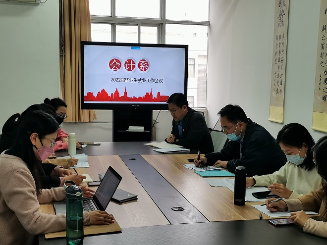 4月12日下午,会计系在海润楼S407召开就业工作会议,系党总支副书记朱华东主持会议,2022届毕业生全体班主任、指导教师和就业辅导员参加会议。