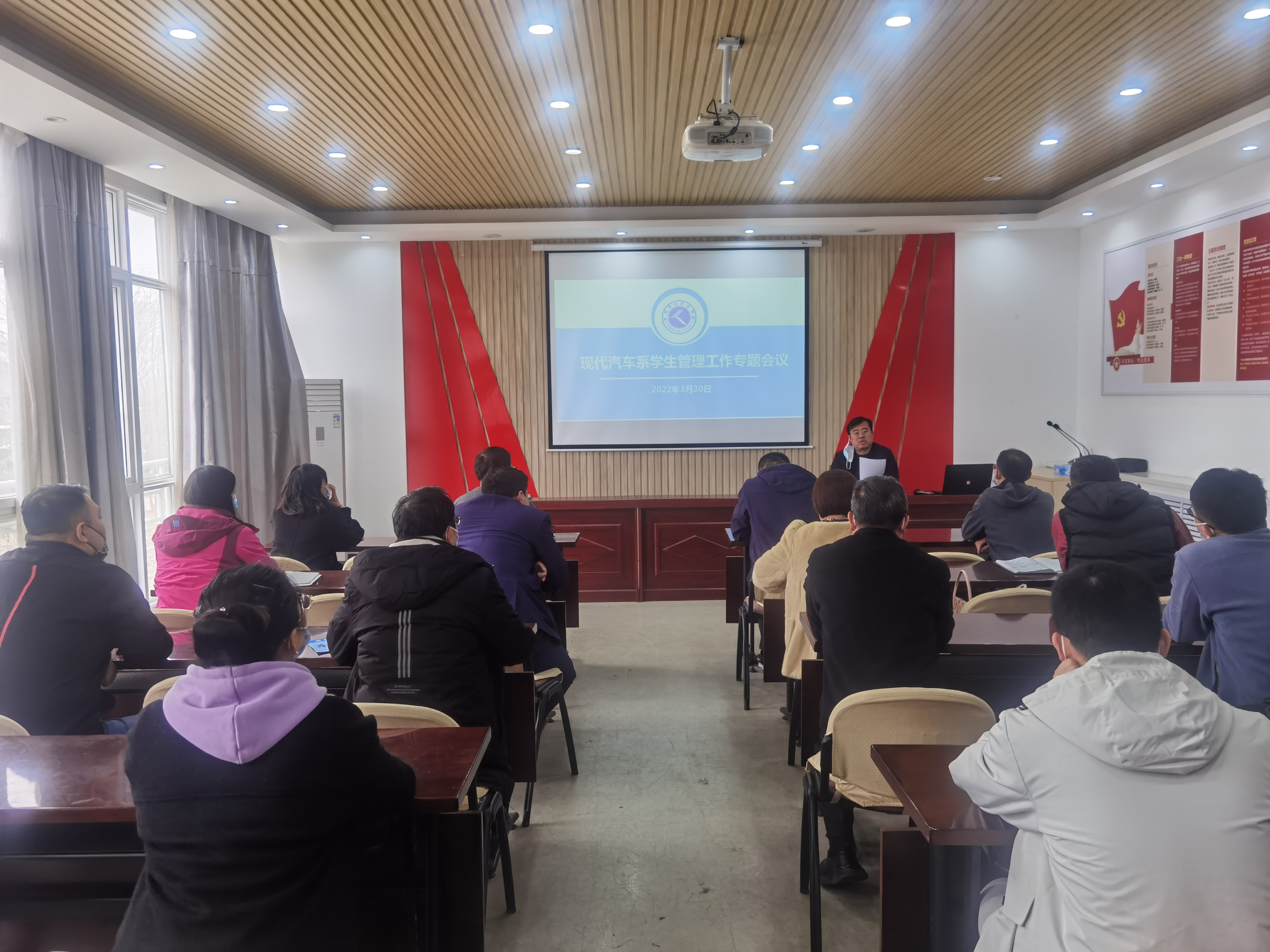 3月30日,现代汽车系组织开展三月份班主任工作沙龙,本次沙龙以专题研讨会的形式开展,活动由党总支副书记庄岩主持,全体辅导员、班主任参加。