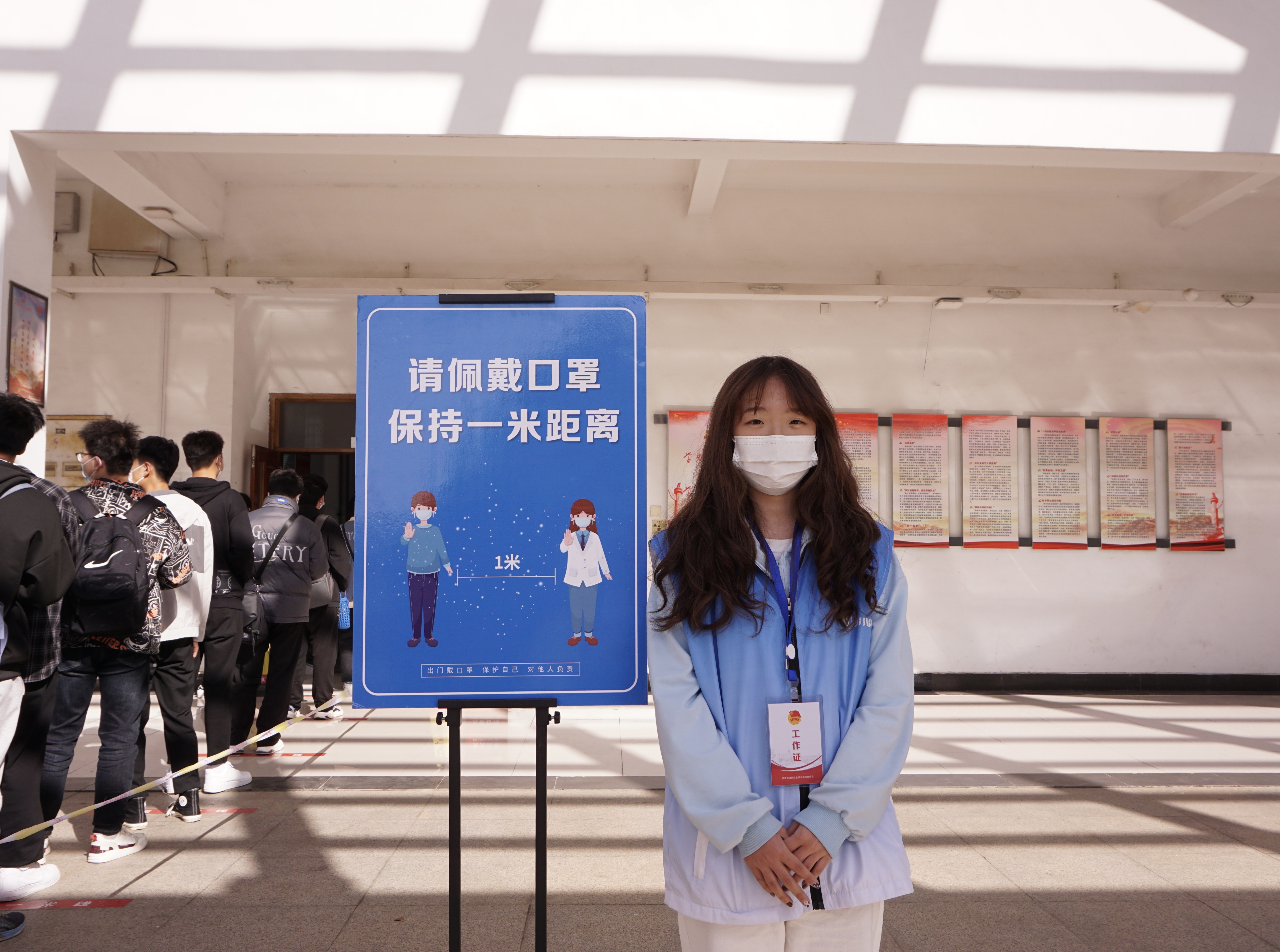 “请大家注意保持一米安全距离”“请大家带好口罩”……负责秩序维护的2020级市场营销专业学生刘庆恒一直要重复好多遍,“我们的任务就是维护检测现场的秩序,保障顺利安全完成检测任务。能作为一名大学生志愿者参与身边的抗疫行动,我感到无比光荣!”刘庆恒略显疲惫的脸上露出了灿烂的笑容。