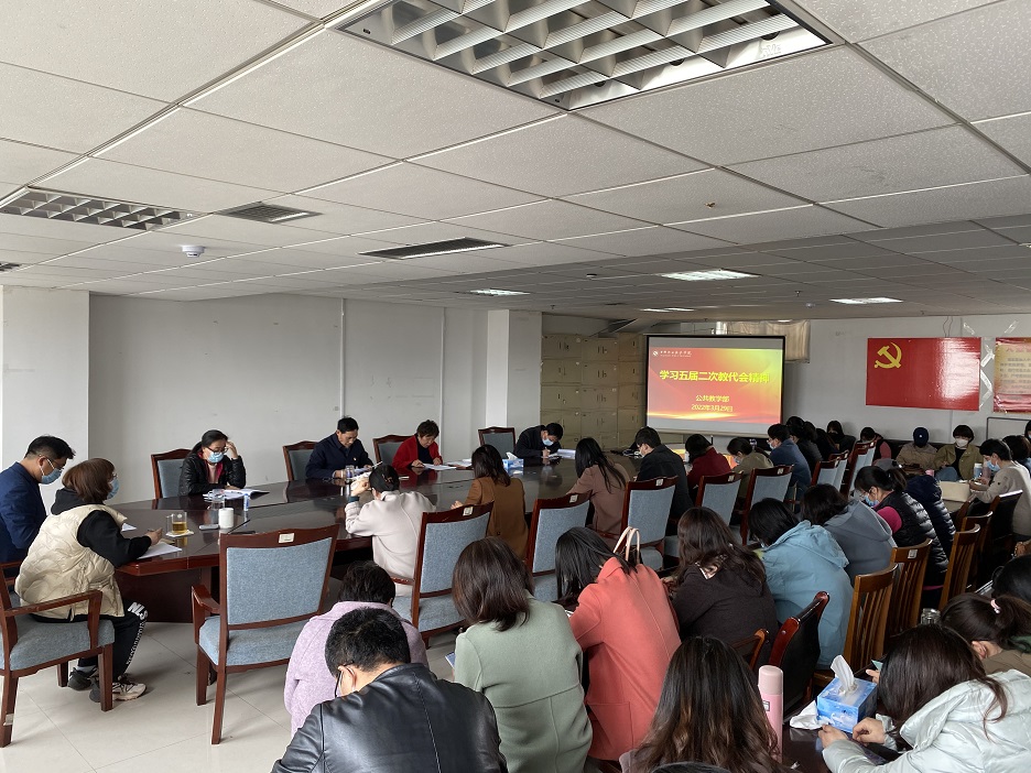 3月29日下午,公共教学部在天润楼501会议室召开全体教师会议,深入学习贯彻学校第五届教职工代表大会第二次会议精神。会议由党总支书记万修亮主持,全体教师参会。