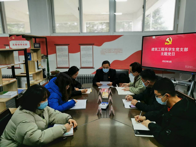 3月17日下午,建筑工程系学生党支部在海润楼M101开展三月份第一次主题党日活动,会议由学生党支部书记乔梓主持,全体党员教师参加会议。