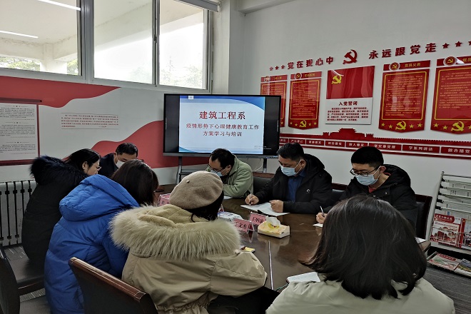 为做好疫情防控期间学生心理防护和心理危机干预工作,帮助学生有效应对疫情防控期间心理问题,建筑工程系于3月19日上午在海润楼M101召开专题会议,对学校下发的《日照职业技术学院疫情形势下心理健康教育工作方案》进行学习与研讨。学工科长毛风华主持会议,党总支副书记乔梓与全体辅导员参加会议。