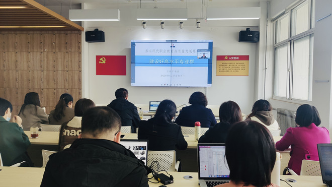 为深入贯彻全国职业教育大会精神,进一步加深对高水平专业群建设思路与方法的理解和把握,加快推进高水平专业群建设进度,3月10日上午,创意设计系在地滋楼A区219会议室组织参加由省教育厅举办的高等职业教育高水平专业群建设视频培训会议,系主任张永宾、教研室主任、教学管理人员及部分骨干教师参加。