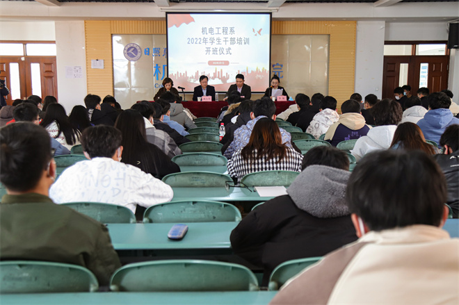 为提高大学生骨干、团干部等青年群体的思想政治素质,3月1日,机电工程系在山润楼319举行学生干部培训活动开班仪式,系党总支副书记成元学及全体辅导员、112名学生干部参加,开班仪式由系团总支书记张西进主持。