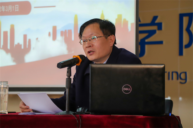 仪式结束后,成元学为学生干部做专题讲座。(机电工程系 张西进 李敏)