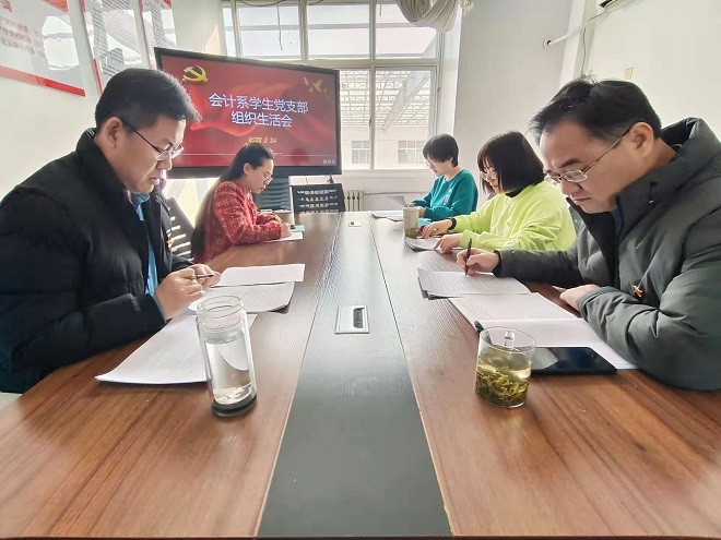 根据学校党委和会计系党总支统一部署,结合工作实际,会计系教师党支部和学生党支部于2月24日下午分别召开了2021年度组织生活会和民主评议党员工作会议,教师党支部书记徐栋和学生党支部书记刘婷分别主持了会议,会计系党总支班子成员以双重身份参加会议。