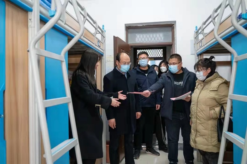 春暖花开,万物复苏,又迎来满载希望的开学季。为贯彻落实学校2022年春季开学疫情防控工作精神,深入了解我系学生返校情况,确保学生新学期宿舍生活的安全和稳定。2月20日下午,商学系党总支书记牟宗国、党总支副书记李运昌、办公室主任田秀政、学生科科长范伟军以及各专业班主任前往学生宿舍看望返校学子。