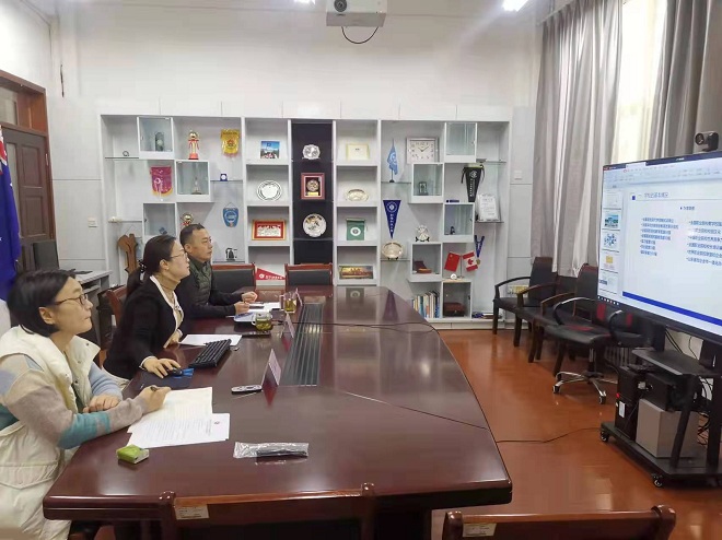 杨静首先介绍了我校基本情况,重点从引进国际优质教育资源、实施国际化师资团队建设、拓展境外办学项目、开展“中文+职业技能”教育等方面对学校国际交流与合作及中文教育情况进行了阐述,并欢迎老挝师生来校交流学习。双方观看了学校留学生招生宣传片。